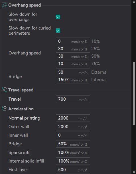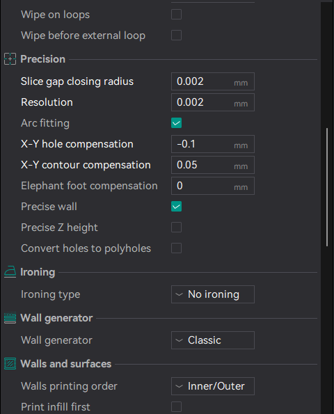 Start with a standard profile of the P2S and set it to 0.2mm nozzle, the according build plate and the filament type. Then set your base process settings to 0.08mm layer height and start from there. The settings are split into the following sections: