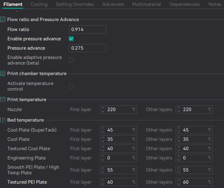 The following settings have been optimized for the BambuLab P2S. These settings are based on HoHansen, Timnolte, Painted4Combat and ObscuraNoc settings and tweaks. At this point - Thank you for your work. Disclaimer: Please always check before printing if the settings are applicable for your setup, printer and environment.